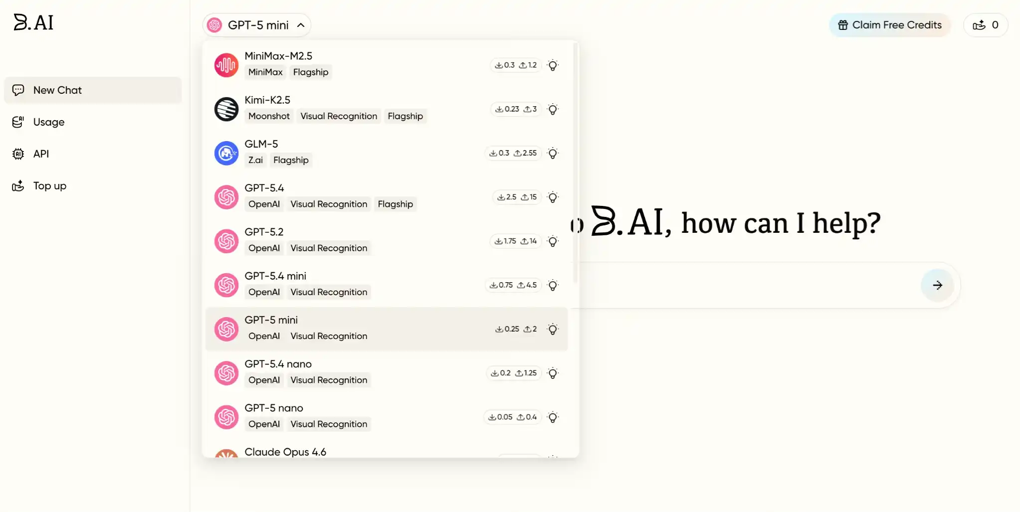 Currently, B.AI has supported top global AI large models such as ChatGPT, Claude, Gemini, as well as cost-effective domestic models like MiniMax, Kimi, GLM, allowing users to interact with different models on a single page. In terms of API calls, it provides a unified API Key service interface, where users only need to create one B.AI API Key to call all integrated model APIs in one place, eliminating the cumbersome process of repeated application and management of multiple API sets from different service providers.