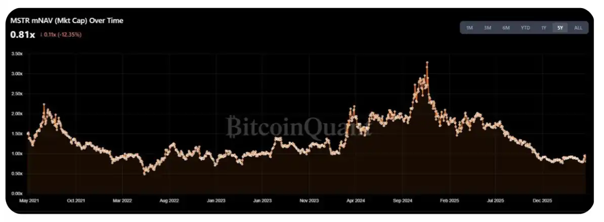 mNAV < 1x → Saylor has to sell BTC instead of issuing more shares;