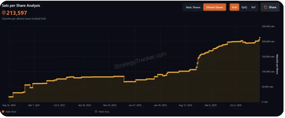Superficially, for common stockholders, continuing to support these "yields" that do not translate into their own upside gains seems to be an irrational behavior — in the case of continued issuance, the BTC holdings per share have not seen a substantial increase (of course, largely due to the Strategy's already massive scale).