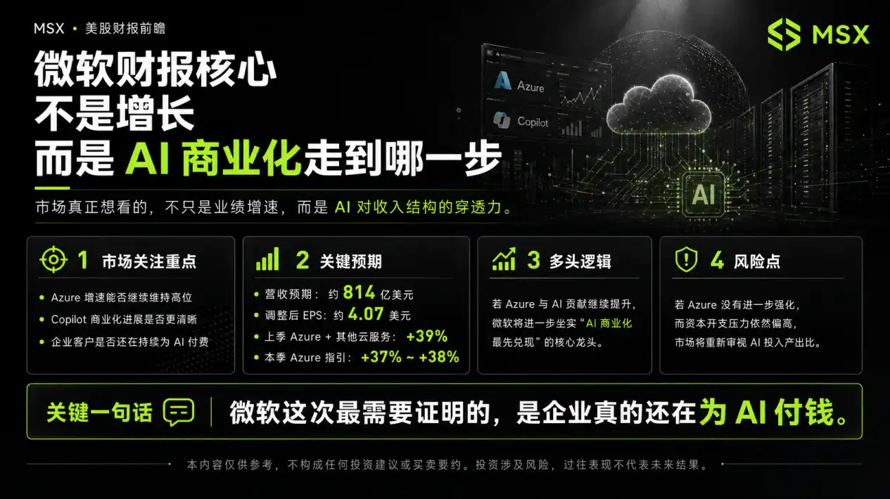 If Microsoft can once again prove that enterprise customers have not cut their budgets for AI tools, and that Azure's contribution to AI is still increasing, then the market will see it as the key leader in "the earliest realization of AI commercialization," and related enterprise software, cloud, and data center chains will continue to benefit. Conversely, if Azure does not further strengthen and capital expenditure pressure remains high, then the market will refocus on the return on investment.