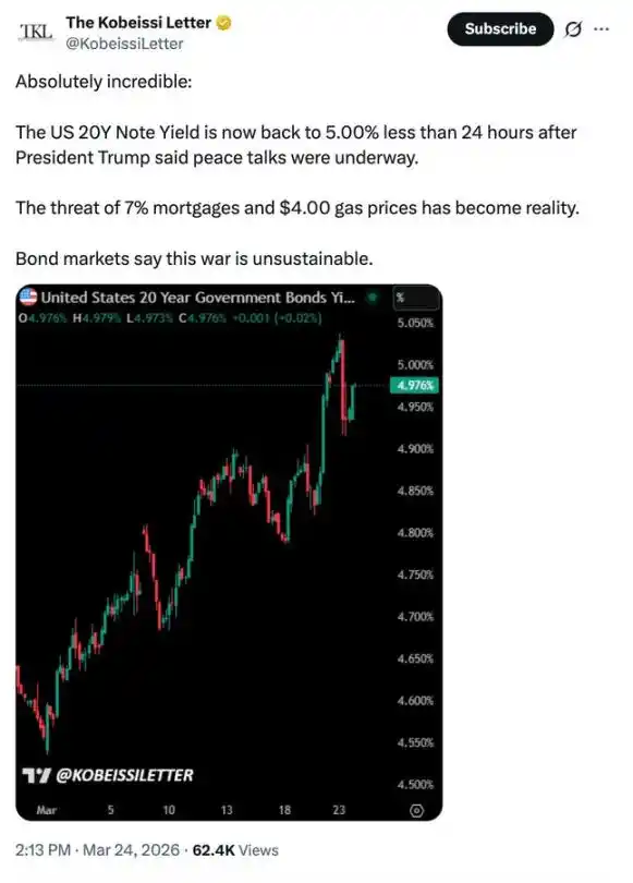 He stated: "The longer the conflict persists, the more likely the Fed will print money to support America's war machine, which is good for Bitcoin."