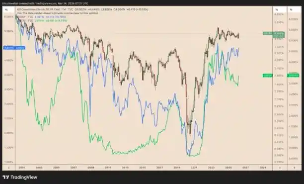 In particular, the 30-year Treasury bond yield has risen to around 4.97%, and the 2-year Treasury bond yield has also increased to the range of 3.95% to 3.98%.