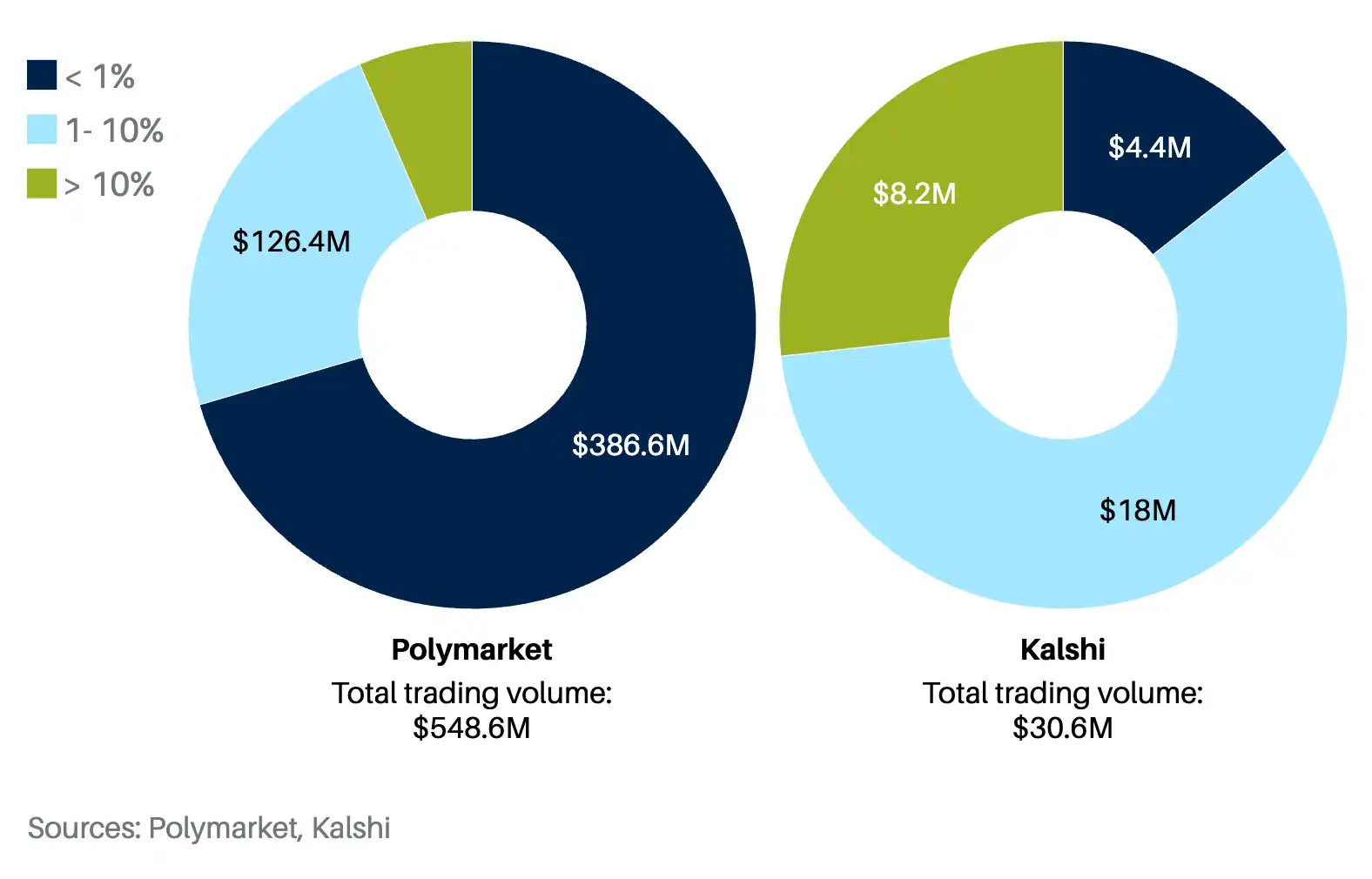 Up to 70% of the transaction volume on Polymarket is placed on competitors with less than a 1% chance of winning.