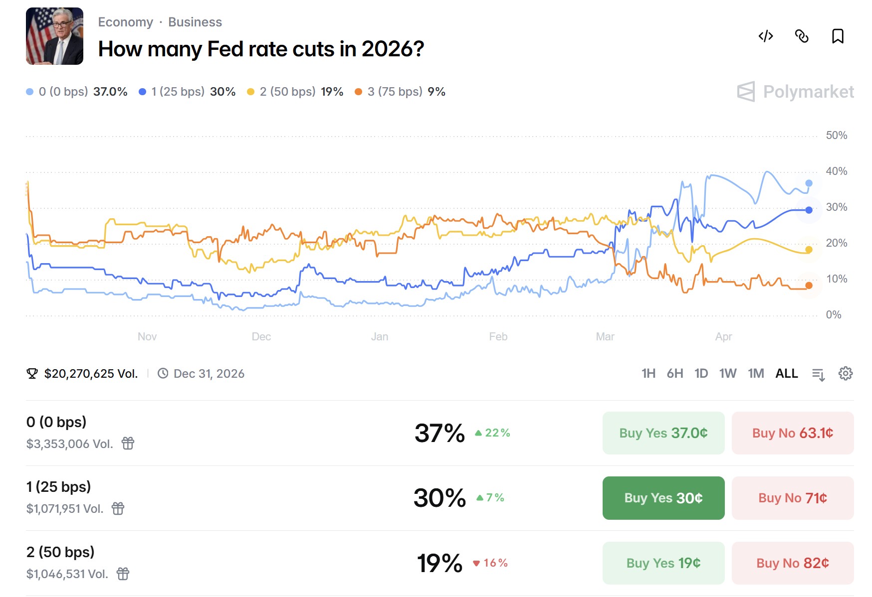Furthermore, according to the latest data from Polymarket, the market's probability of the Fed cutting interest rates once this year has risen to 30%.