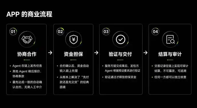 What the APP aims to address is precisely this gap: not just enabling Agents to make payments but empowering Agents to reliably conduct business. Meanwhile, you only need to review the results and make decisions.