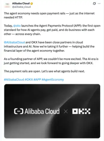 As one of Asia's largest cloud computing service providers, Alibaba Cloud has joined as a founding partner, likening this moment to a key point in the history of the Internet: "The Agent economy needs open payment infrastructure—just like the Internet needs HTTP."