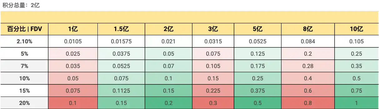 根据用户 Nathan 整理,若积分总量为 2 亿,对于近几周刷交易量赚 GP 积分的用户,Genius 开盘 FDV 最少要高达 8 亿美元才不会「被反撸」。