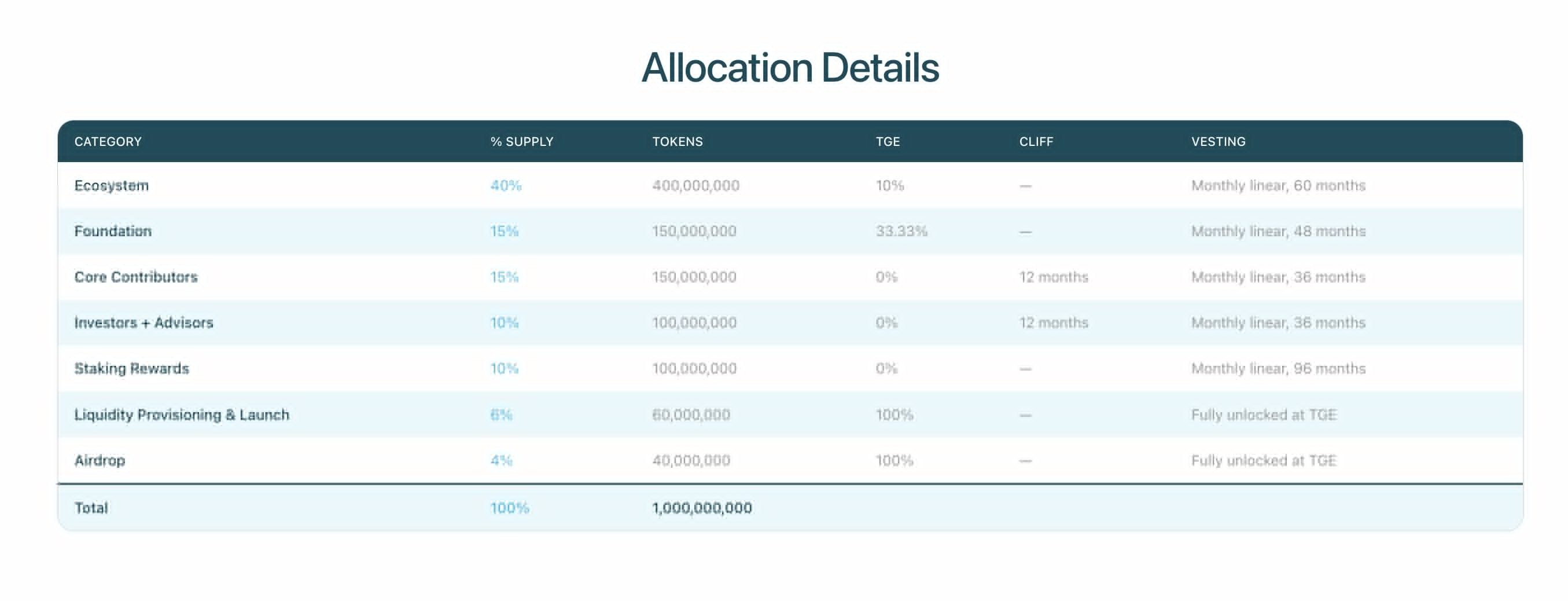 · 基金会(15%):TGE 时解锁 33.33%,其余释放时间为 48 个月。