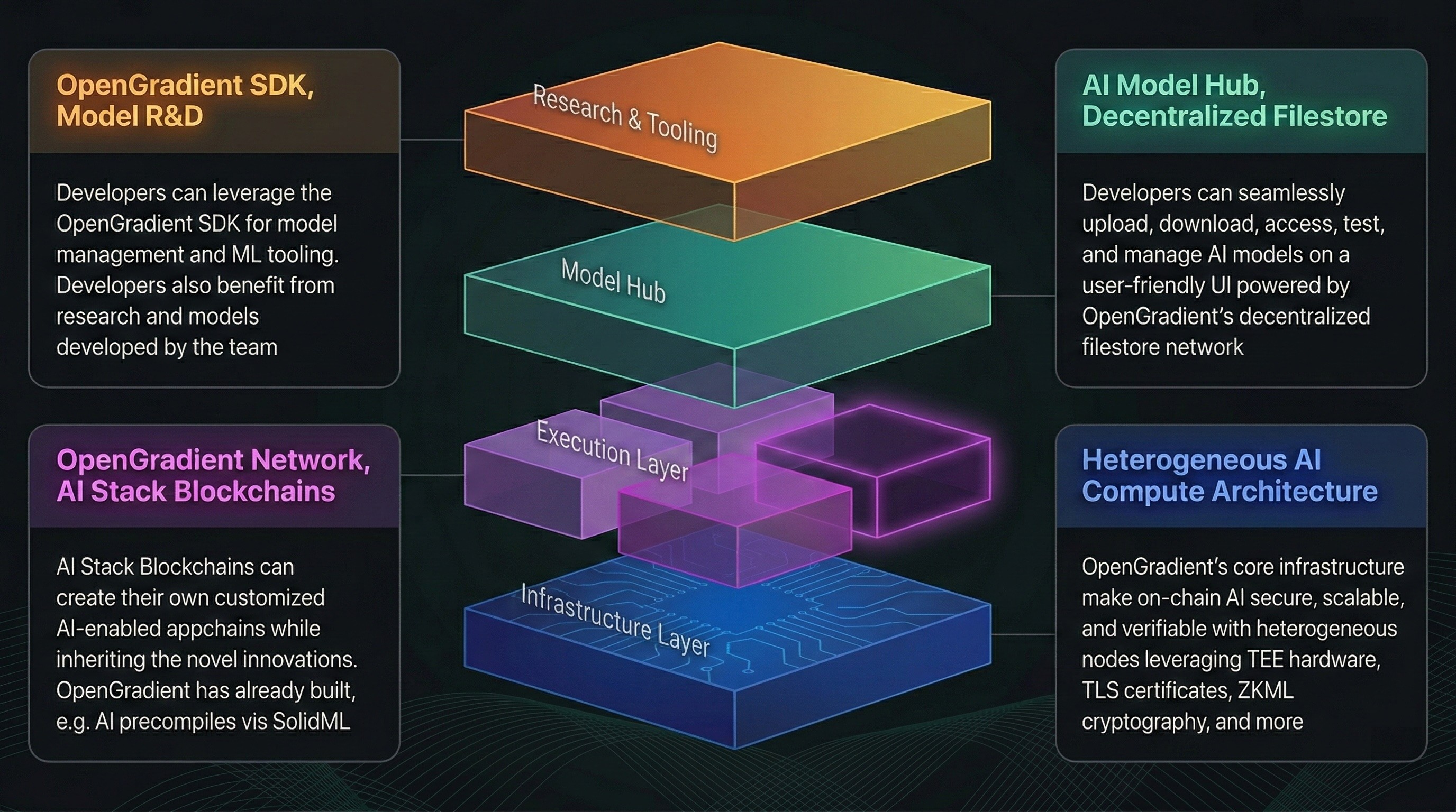 OpenGradient 也围绕这一核心能力构建了一系列面向开发者和用户的产品与服务,旨在打造一个完整的链上 AI 生态系统。