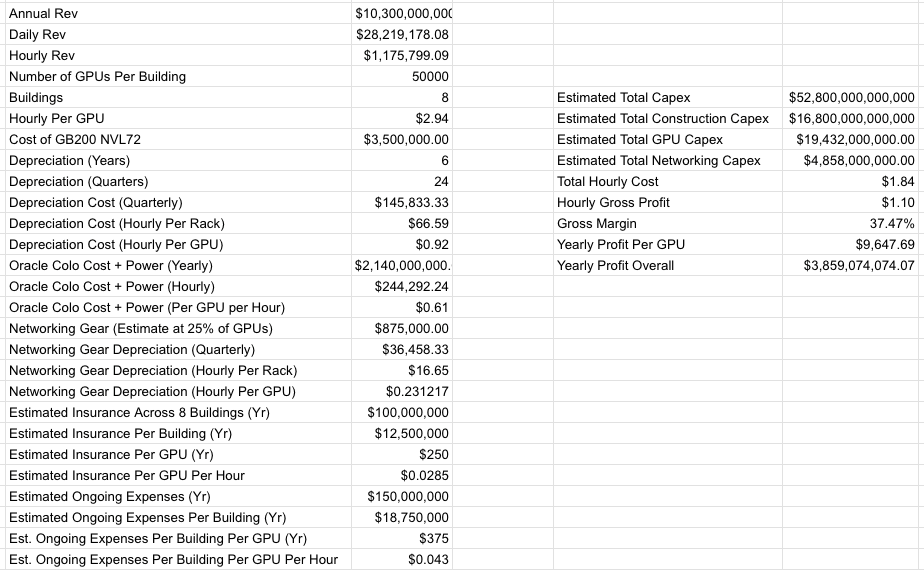让我们谈谈应该是数据中心历史上最具经济可行性的单一项目——一个由 Oracle 为世界上最大的 AI 公司建造的大型园区,Oracle 是一个拥有数十年历史的近超大规模企业,有向企业和政府销售昂贵数据库和业务管理软件的历史。