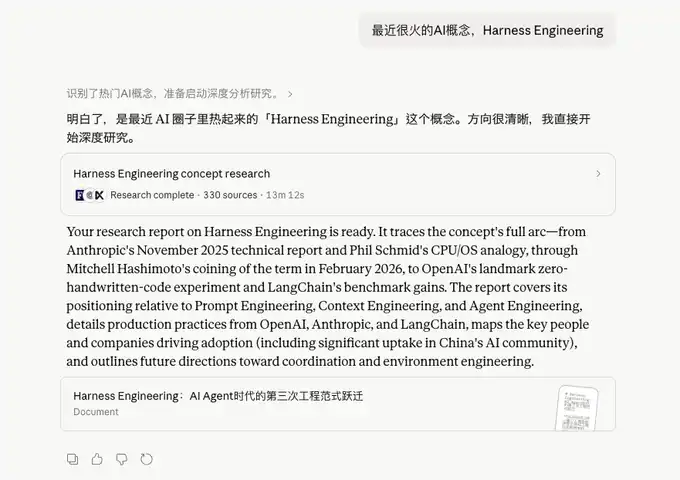 我用最近最火的 Harness+Claude 的深度研究来举个例子吧。