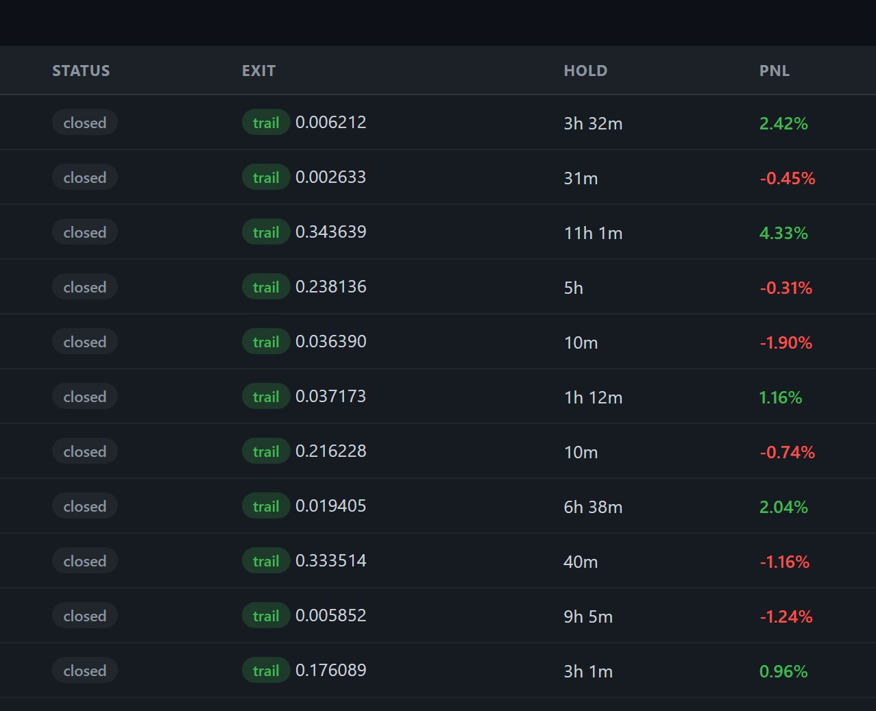 · V4A:触发适中(约占 26%),目前 胜率 100%,PNL 大约 25%