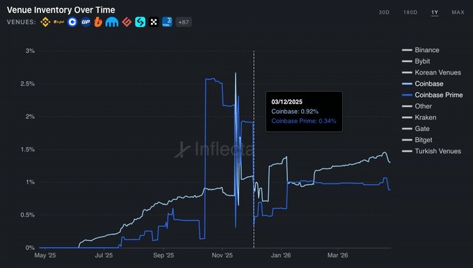 · 11-12 月期间,总供应的约 2% 在 Coinbase 和 Coinbase Prime 之间重新平衡